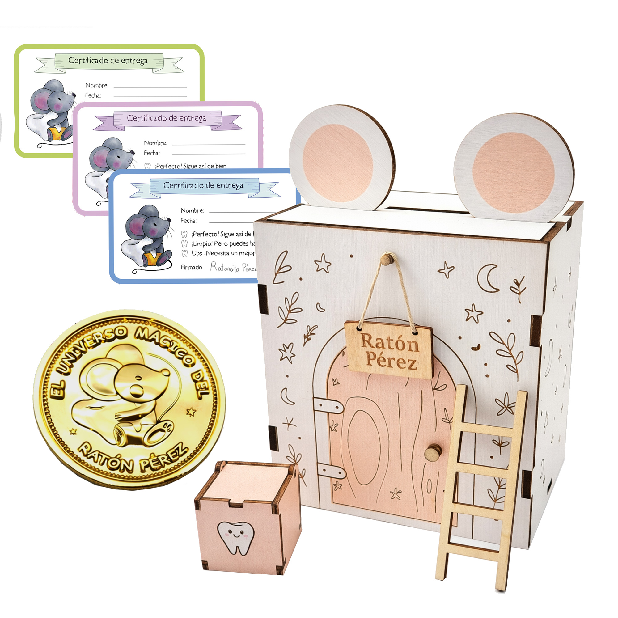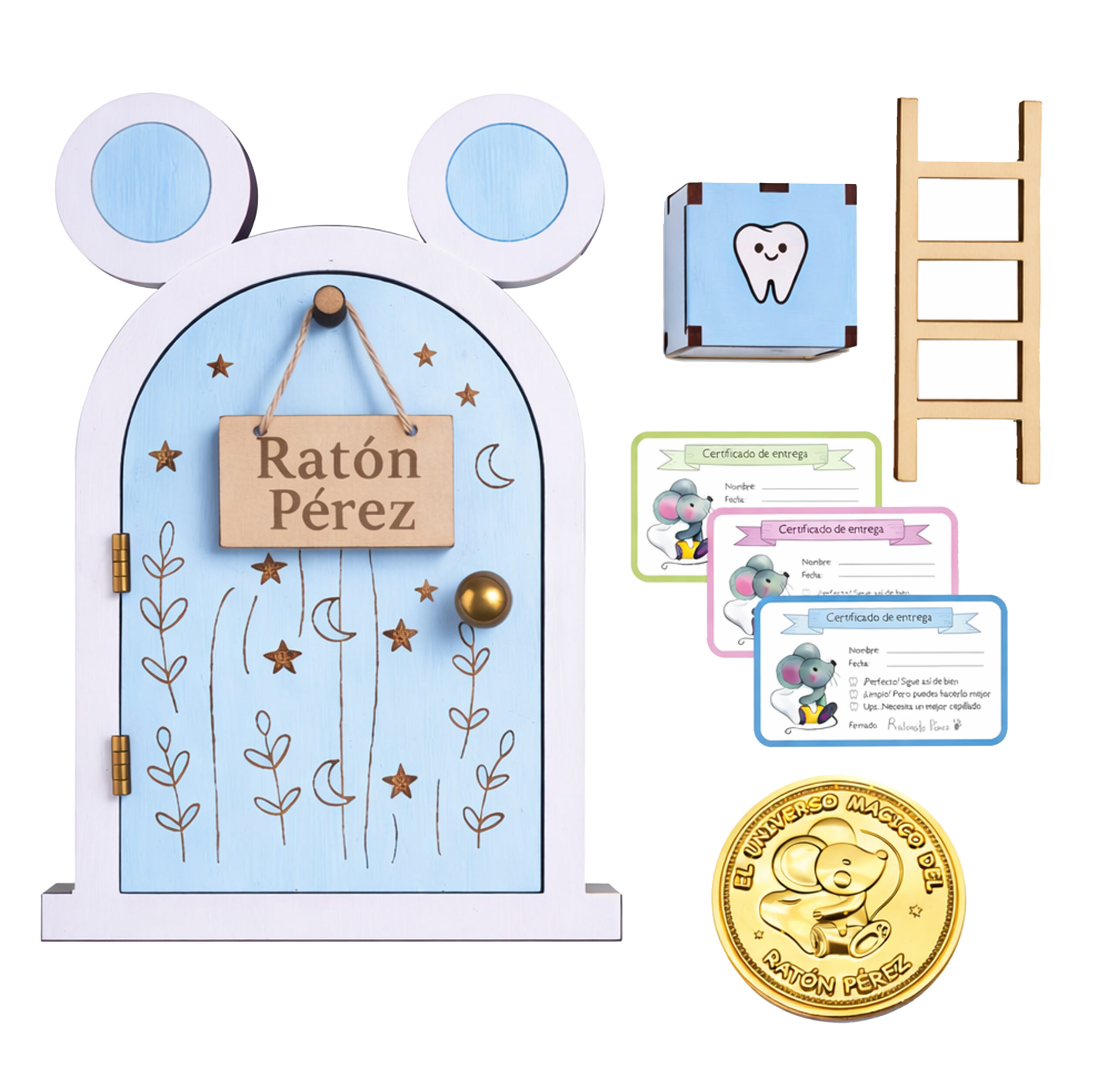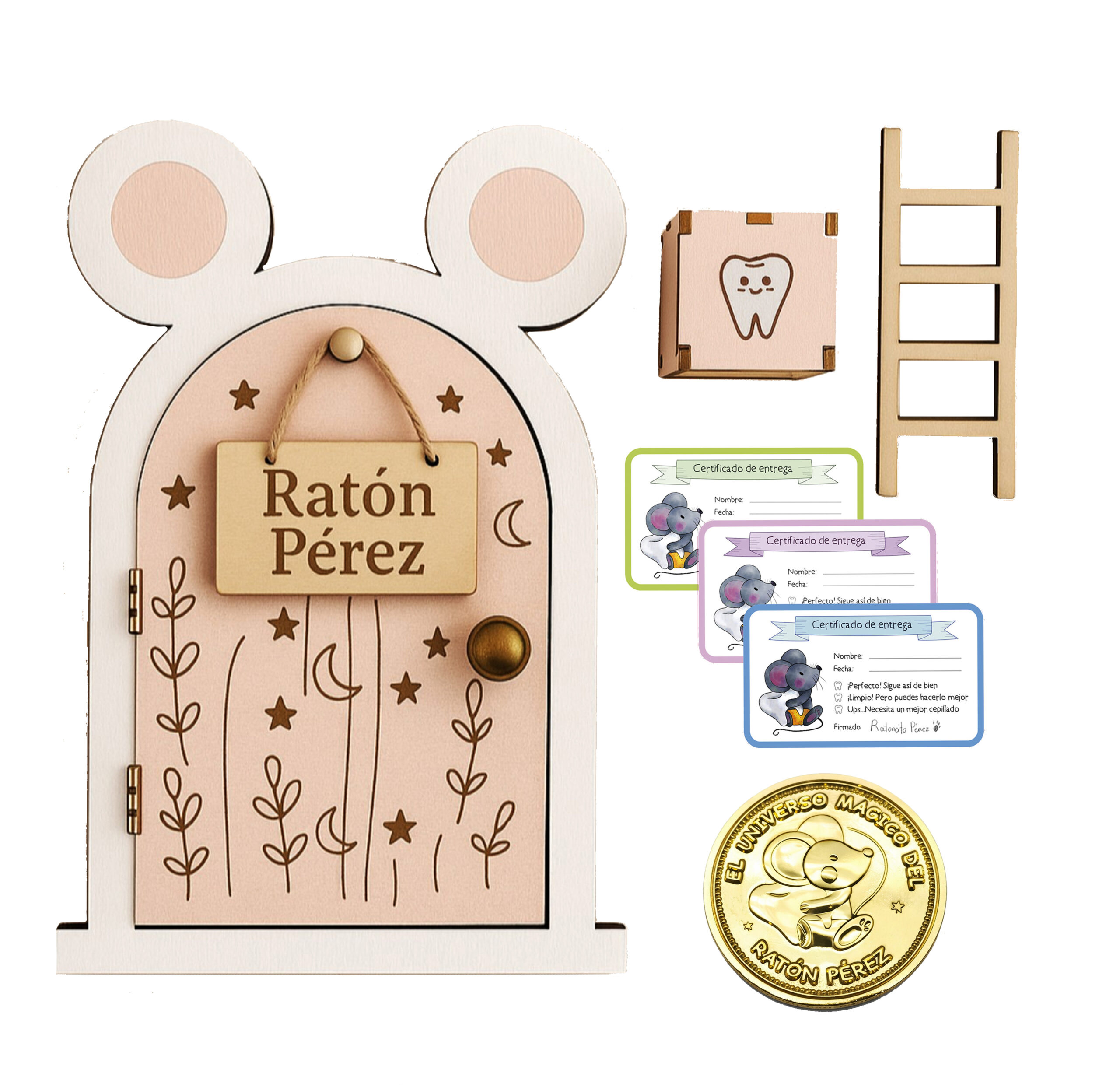 ✨ Puerta Ratoncito Pérez mágica infantil: Diseñada para mantener viva la ilusión de los más pequeños. Una pequeña puerta de madera que se abre de verdad, donde el Ratón Pérez entra cada noche a recoger los dientes.